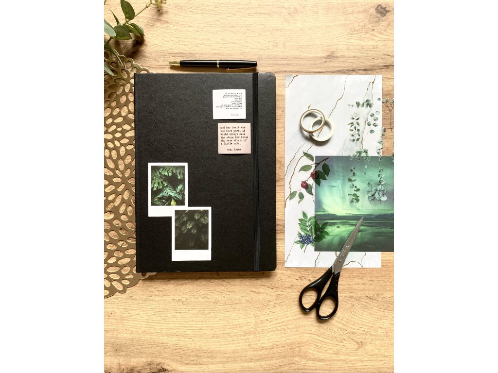 Černý deník pro scrapbook. Velikost listů A4, listy mají bohatou gramáž, takže neprosvítají a nezvlhčí se lepidlem. Čeká na všechny úžasné vzpomínky a koláže.
